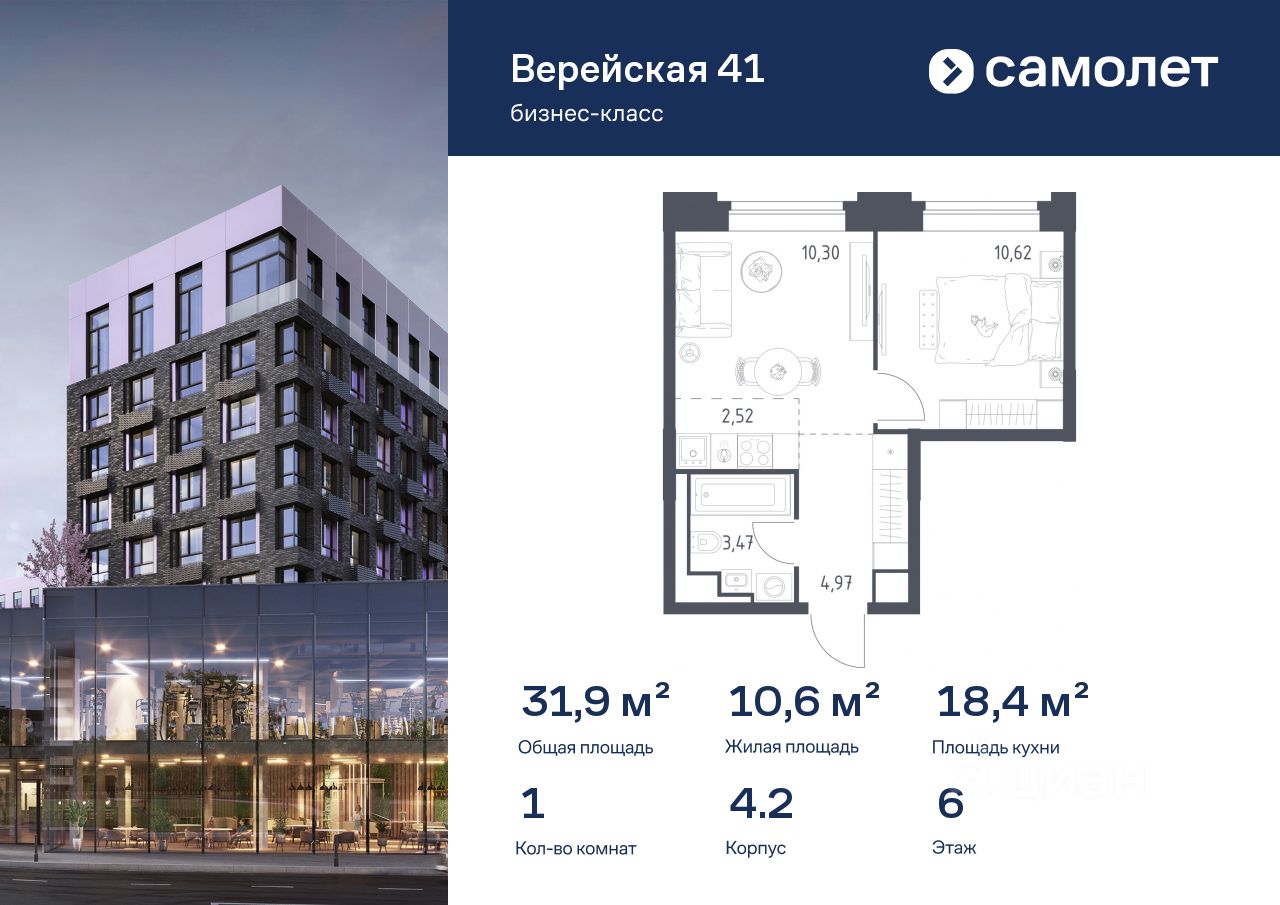 Строим кварталы для жизни с заботой о будущем. Предлагается 1-комнатная квартира бизнес-класса 31,88 кв.м в корпусе 4.2 на 6 этаже, в "Верейская 41"