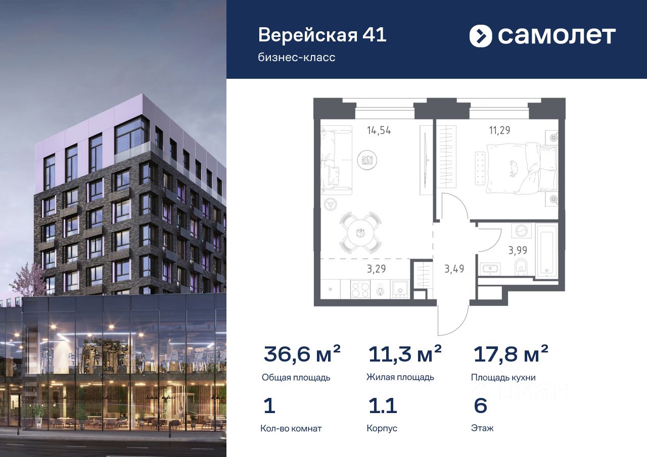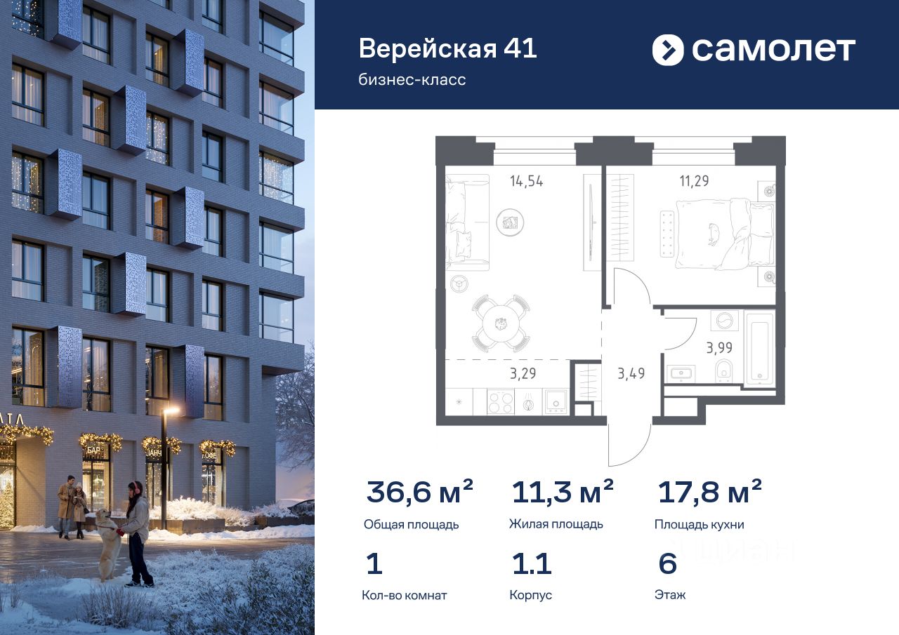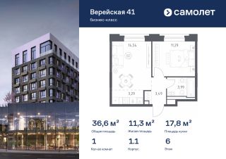 Строим кварталы для жизни с заботой о будущем. Предлагается 1-комнатная квартира бизнес-класса 36,6 кв.м в корпусе 1.1 на 6 этаже, в "Верейская 41"