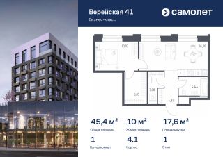 Строим кварталы для жизни с заботой о будущем. Предлагается 1-комнатная квартира бизнес-класса 45,35 кв.м в корпусе 4.1 на 1 этаже, в "Верейская 41"