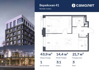 Строим кварталы для жизни с заботой о будущем. Предлагается 1-комнатная квартира бизнес-класса 43,91 кв.м в корпусе 3.1 на 3 этаже, в "Верейская 41"