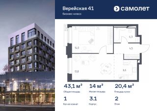 Строим кварталы для жизни с заботой о будущем. Предлагается 1-комнатная квартира бизнес-класса 43,06 кв.м в корпусе 3.1 на 2 этаже, в "Верейская 41"