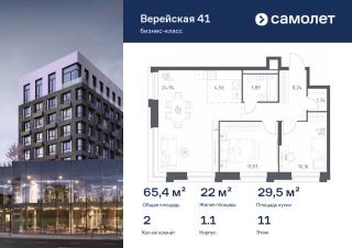 Строим кварталы для жизни с заботой о будущем. Предлагается 2-комнатная квартира бизнес-класса 65,4 кв.м в корпусе 1.1 на 11 этаже, в "Верейская 41"