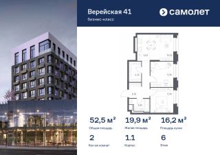 Строим кварталы для жизни с заботой о будущем. Предлагается 2-комнатная квартира бизнес-класса 52,5 кв.м в корпусе 1.1 на 6 этаже, в "Верейская 41"