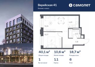 Строим кварталы для жизни с заботой о будущем. Предлагается 1-комнатная квартира бизнес-класса 40,13 кв.м в корпусе 1.1 на 6 этаже, в "Верейская 41"
