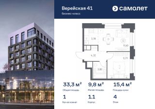 Строим кварталы для жизни с заботой о будущем. Предлагается 1-комнатная квартира бизнес-класса 33,27 кв.м в корпусе 1.1 на 4 этаже, в "Верейская 41"