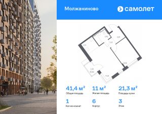 Строим кварталы для жизни с заботой о будущем. Предлагается 1-комнатная квартира комфорт-класса 41,44 кв.м в корпусе 6 на 3 этаже, в ЖК "Молжаниново"