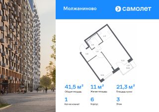 Строим кварталы для жизни с заботой о будущем. Предлагается 1-комнатная квартира комфорт-класса 41,46 кв.м в корпусе 6 на 3 этаже, в ЖК "Молжаниново"