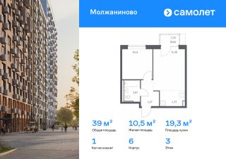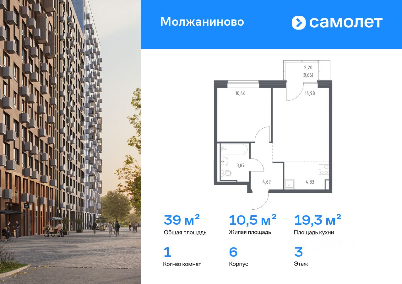 Строим кварталы для жизни с заботой о будущем. Предлагается 1-комнатная квартира комфорт-класса 38,97 кв.м в корпусе 6 на 3 этаже, в ЖК "Молжаниново"