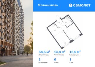 Строим кварталы для жизни с заботой о будущем. Предлагается 1-комнатная квартира комфорт-класса 34,49 кв.м в корпусе 6 на 1 этаже, в ЖК "Молжаниново"