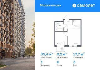 Строим кварталы для жизни с заботой о будущем. Предлагается 1-комнатная квартира комфорт-класса 35,37 кв.м в корпусе 6 на 3 этаже, в ЖК "Молжаниново"