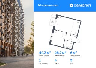 Строим кварталы для жизни с заботой о будущем. Предлагается 1-комнатная квартира комфорт-класса 44,3 кв.м в корпусе 4 на 3 этаже, в ЖК "Молжаниново"