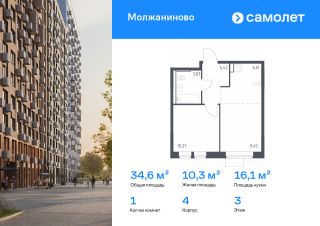 Строим кварталы для жизни с заботой о будущем. Предлагается 1-комнатная квартира комфорт-класса 34,62 кв.м в корпусе 4 на 3 этаже, в ЖК "Молжаниново"