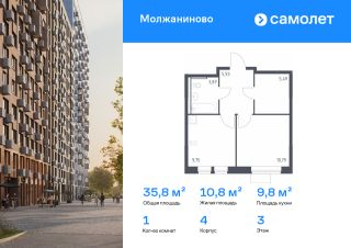 Строим кварталы для жизни с заботой о будущем. Предлагается 1-комнатная квартира комфорт-класса 35,83 кв.м в корпусе 4 на 3 этаже, в ЖК "Молжаниново"
