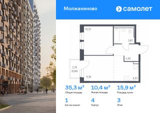 Строим кварталы для жизни с заботой о будущем. Предлагается 1-комнатная квартира комфорт-класса 35,32 кв.м в корпусе 4 на 3 этаже, в ЖК "Молжаниново"