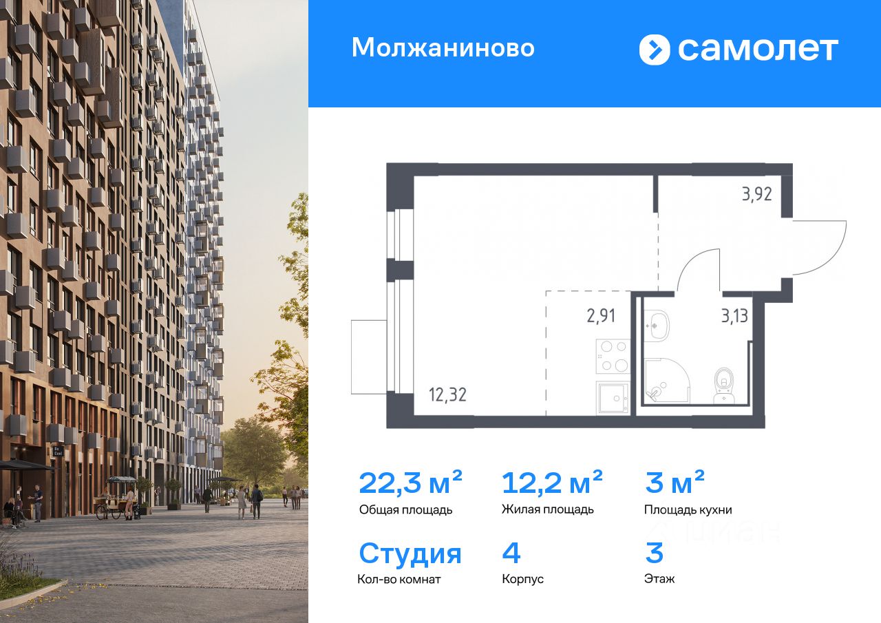 Строим кварталы для жизни с заботой о будущем. Предлагается квартира студия комфорт-класса 22,28 кв.м в корпусе 4 на 3 этаже, в ЖК "Молжаниново"