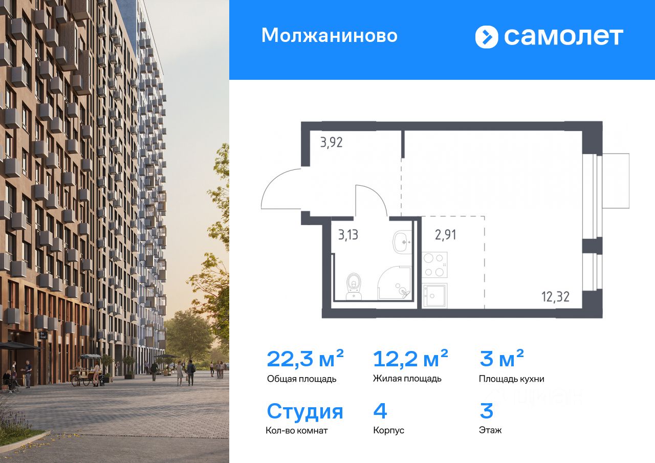 Строим кварталы для жизни с заботой о будущем. Предлагается квартира студия комфорт-класса 22,28 кв.м в корпусе 4 на 3 этаже, в ЖК "Молжаниново"