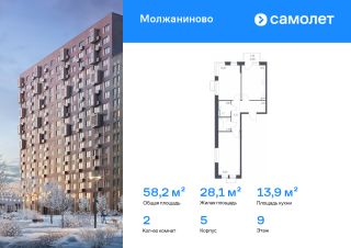 Строим кварталы для жизни с заботой о будущем. Предлагается 2-комнатная квартира комфорт-класса 58,2 кв.м в корпусе 5 на 9 этаже, в ЖК "Молжаниново"