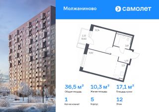 Строим кварталы для жизни с заботой о будущем. Предлагается 1-комнатная квартира комфорт-класса 36,5 кв.м в корпусе 5 на 12 этаже, в ЖК "Молжаниново"