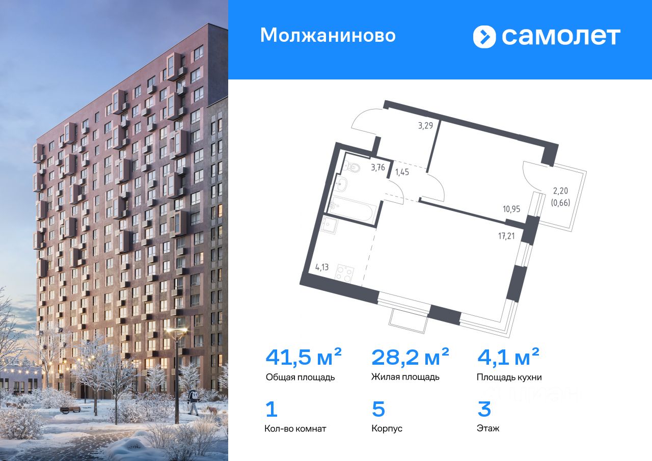 Строим кварталы для жизни с заботой о будущем. Предлагается 1-комнатная квартира комфорт-класса 41,45 кв.м в корпусе 5 на 3 этаже, в ЖК "Молжаниново"