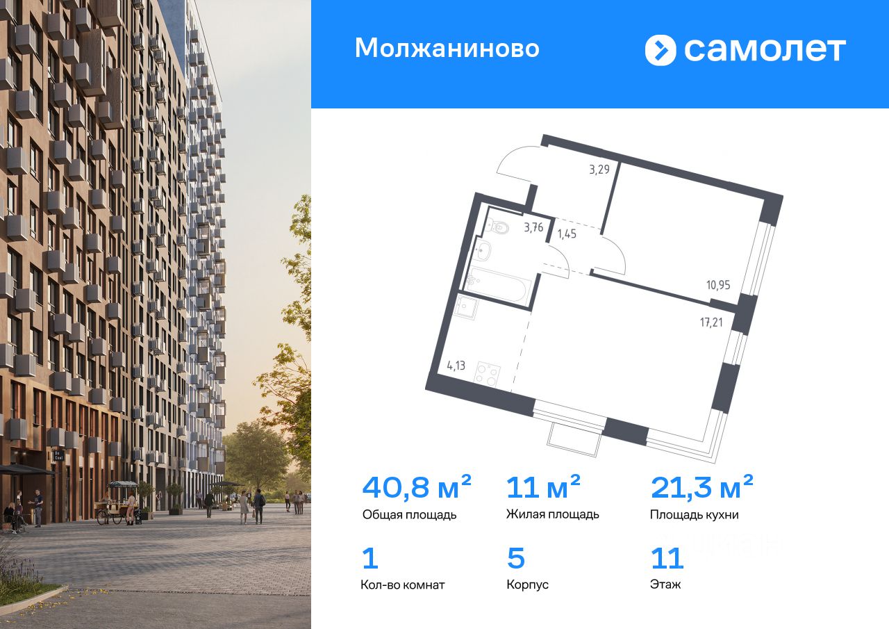 Строим кварталы для жизни с заботой о будущем. Предлагается 1-комнатная квартира комфорт-класса 40,79 кв.м в корпусе 5 на 11 этаже, в ЖК "Молжаниново"