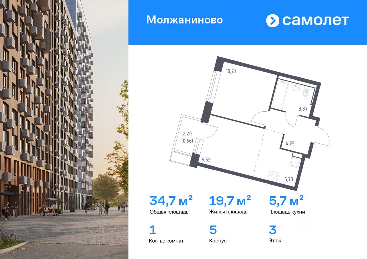 Строим кварталы для жизни с заботой о будущем. Предлагается 1-комнатная квартира комфорт-класса 34,74 кв.м в корпусе 5 на 3 этаже, в ЖК "Молжаниново"