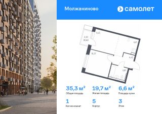 Строим кварталы для жизни с заботой о будущем. Предлагается 1-комнатная квартира комфорт-класса 35,28 кв.м в корпусе 5 на 3 этаже, в ЖК "Молжаниново"