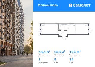 Строим кварталы для жизни с заботой о будущем. Предлагается 1-комнатная квартира комфорт-класса 44,43 кв.м в корпусе 5 на 14 этаже, в ЖК "Молжаниново"