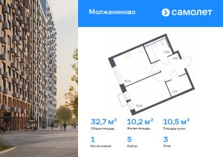 Строим кварталы для жизни с заботой о будущем. Предлагается 1-комнатная квартира комфорт-класса 32,74 кв.м в корпусе 5 на 3 этаже, в ЖК "Молжаниново"