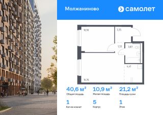 Строим кварталы для жизни с заботой о будущем. Предлагается 1-комнатная квартира комфорт-класса 40,62 кв.м в корпусе 5 на 1 этаже, в ЖК "Молжаниново"