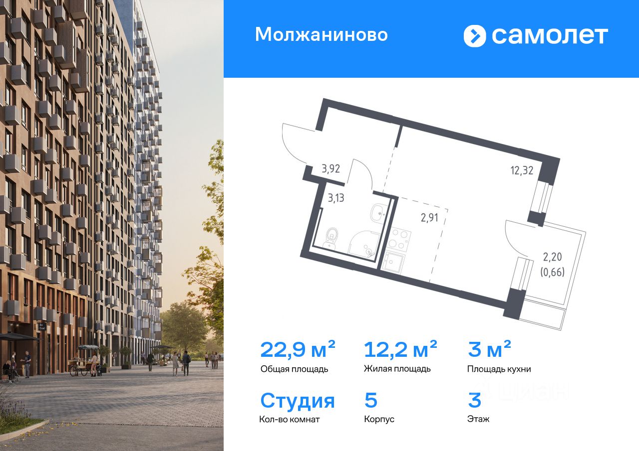 Строим кварталы для жизни с заботой о будущем. Предлагается квартира студия комфорт-класса 22,94 кв.м в корпусе 5 на 3 этаже, в ЖК "Молжаниново" Квартира с чистовой отделкой. Доступность дополнительных опций уточняйте у застройщика. Приобрести квартиру возможно по специальным акциям от застройщика, с текущими условиями акций можно ознакомиться в блоке "Акций". Цена динамическая и может отличаться, уточняйте актуальность у застройщика. Жилой комплекс "Молжаниново" — это место, где каждый маршрут продуман так, чтобы вы проводили больше времени с близкими, а не в дороге. Ставьте паруса в канале имени Москвы, устраивайте пикники в Химкинском лесу или ищите редких птиц в Захарьинской пойме. Жилой комплекс сочетает в себе комфорт городской жизни с преимуществами природы. С одной стороны — московская регистрация, собственная инфраструктура, благоустроенные дворы с детскими площадками и зонами отдыха. С другой — ручей и пруд прямо на территории, а также много леса вокруг.