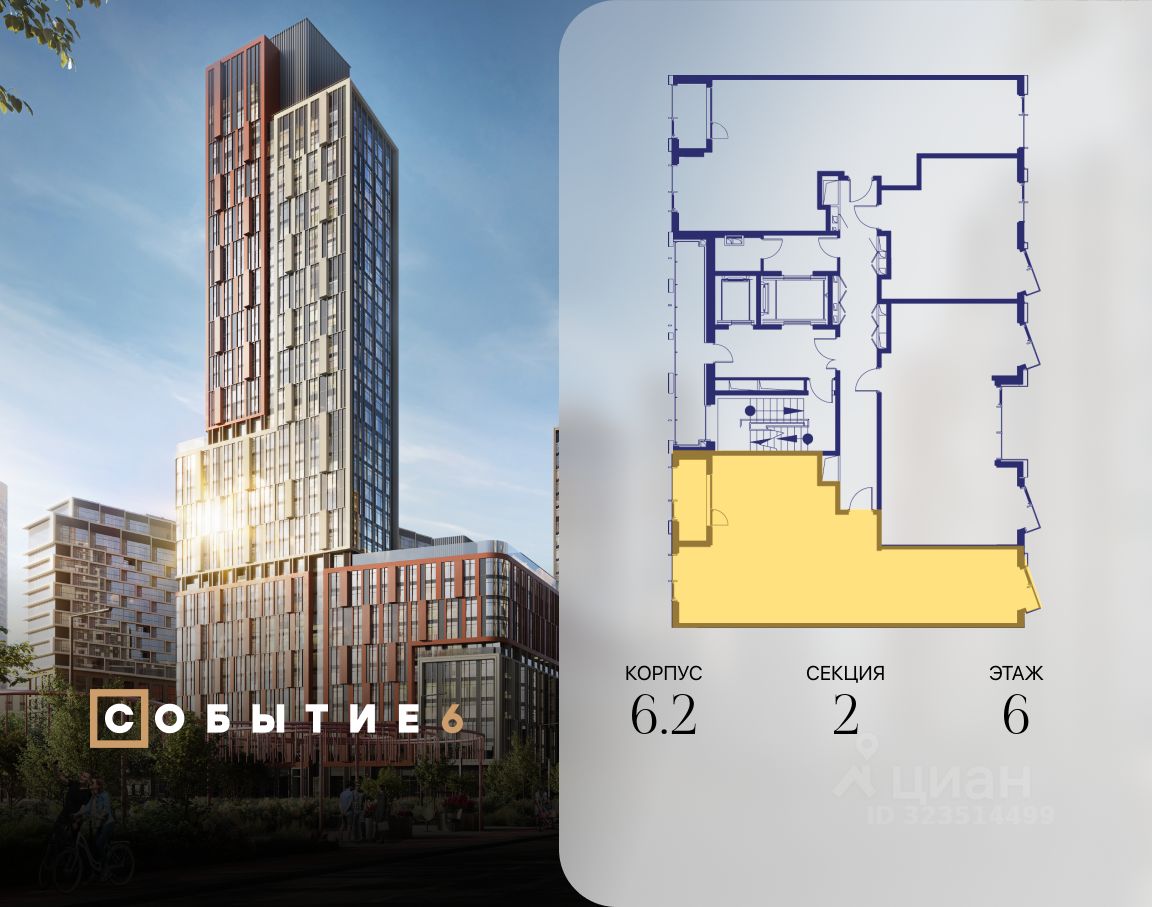 Продаётся 2-комнатная квартира от застройщика: общая площадь 74.30 м², жилая 31.80 м², кухня 18.50 м², 6-й этаж, жилой квартал "Событие-6", корпус 2 (секция 2) Срок сдачи: 1 квартал 2029 года.