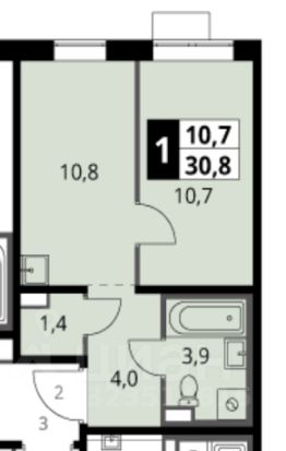 Квартира будет сдана с отделкой от застройщика в стиле Белый шоколад, после получения ключей можно заехать, расставить мебель и жить: общая площадь по ДДУ 30,8 кв.м. (кухня 10,8 кв.м и спальная комната 10,7 кв.м) на 15 этаже 24-этажного дома. Вид из окон в тихий двор.