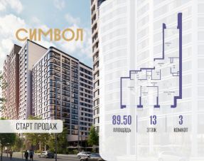 Продается 3-комнатная квартира от застройщика: общая площадь 89.50 м², жилая 44.10 м², кухня 22.50 м², 13-й этаж, жилой квартал "Гордость", корпус 36 (секция 2). Срок сдачи: 2 квартал 2029 года.