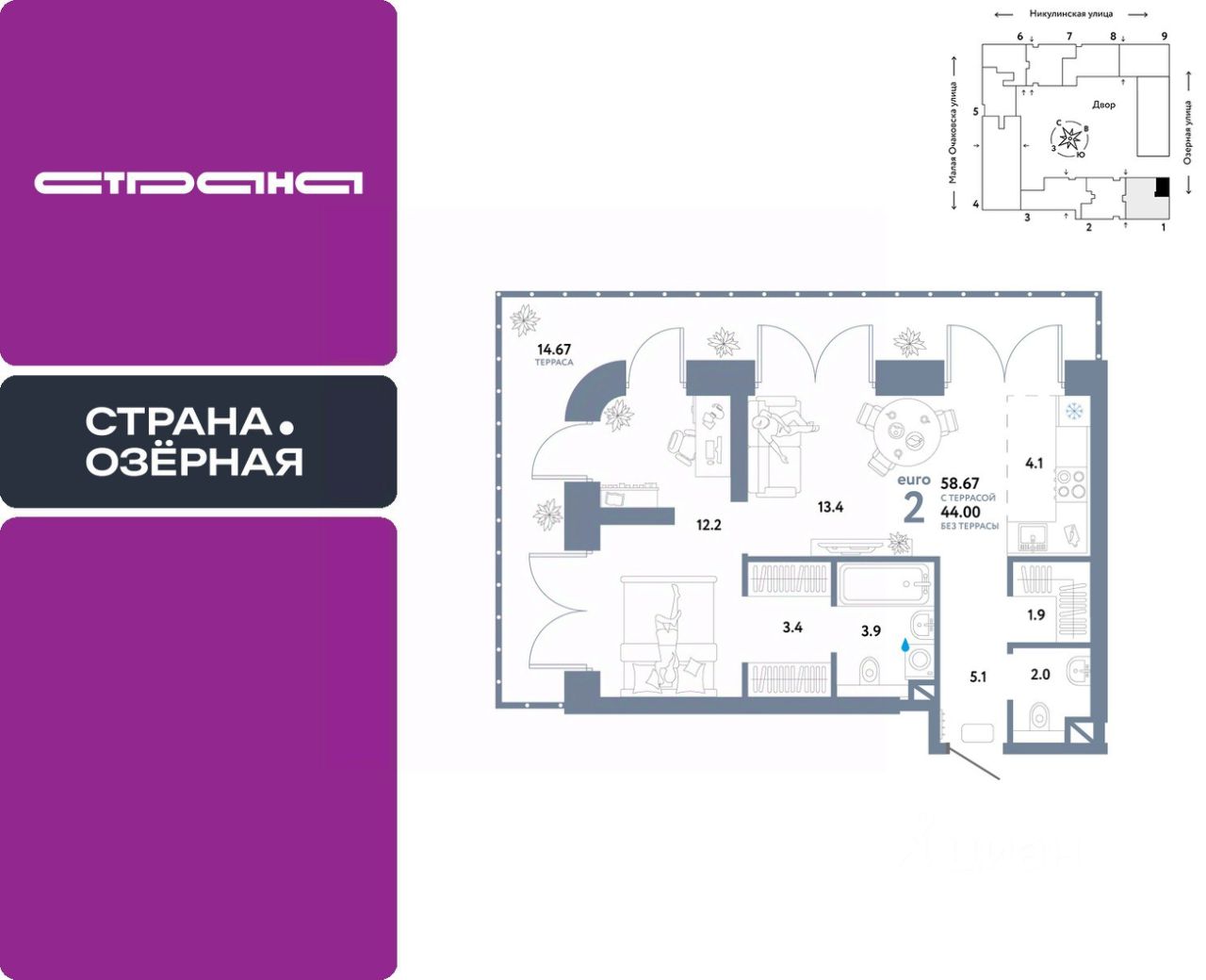 2комнатная квартира площадью 58,67кв. м. на 8этаже в доме "Байкал" жилого комплекса "Страна.Озёрная" . Срок сдачи дома - 2 квартал 2026 года.