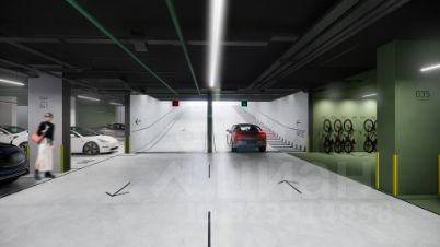 Паркинг с въездом по считыванию номеров, системой контроля выбросов CO2, тележками для покупок и велопарковкой торговая галерея на первом этаже дома