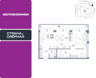 2комнатная квартира площадью 59,53 кв. м на 8 этаже в доме "Байкал" жилого комплекса "Страна.Озёрная" . Срок сдачи дома - 3 квартал 2025 года.