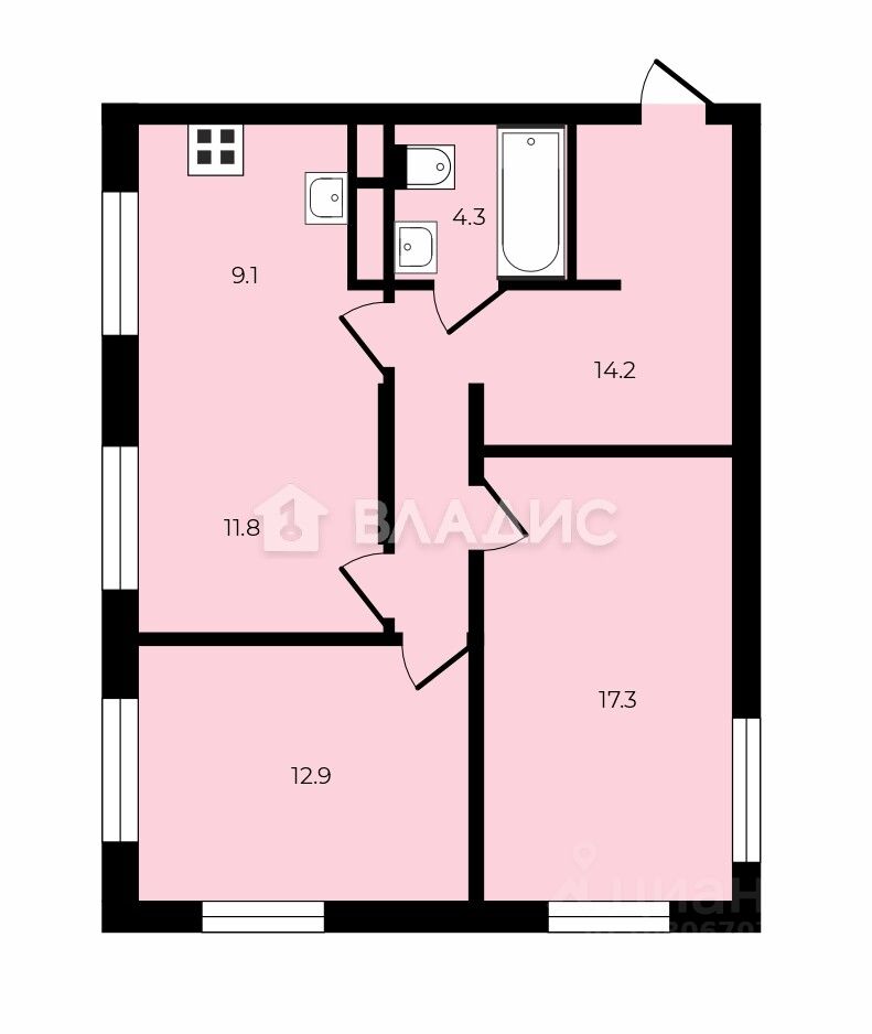 - по планировке - изолированные комнаты 17,3 м2 и 12,9 м2;