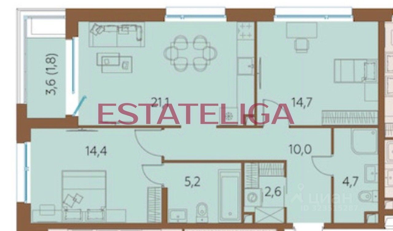 Id 57906. УЮТНАЯ ЕВРО-ТРЕШКА В 6 ОСТРОВЕ С ЛОДЖИЕЙ ПРЯМО ВО ДВОР!
