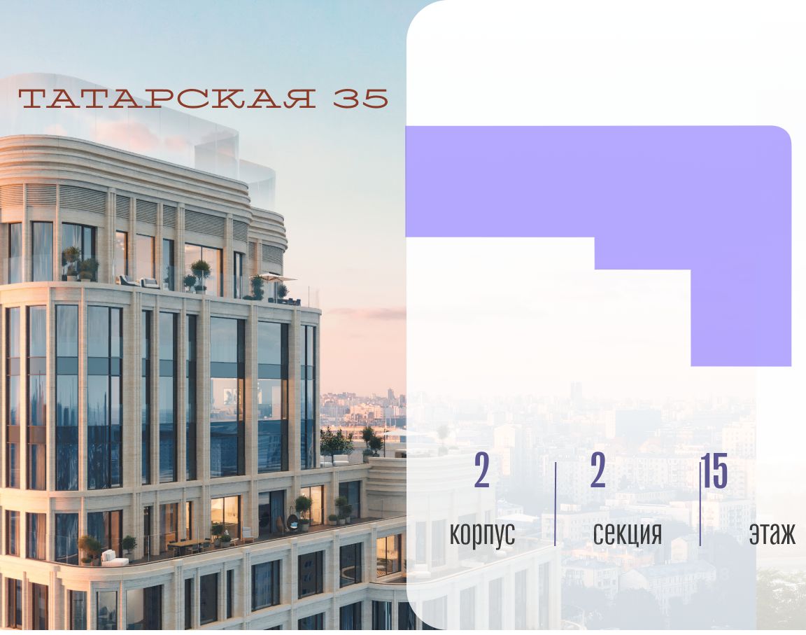 ТАТАРСКАЯ, 35 - новая архитектурная доминанта Замоскворечья, достопримечательность на фотопанорамах исторического центра Москвы. Элитный дом, созданный для тех, кто умеет смотреть далеко вперед, мыслить масштабно и воплощать собственный сценарий жизни.