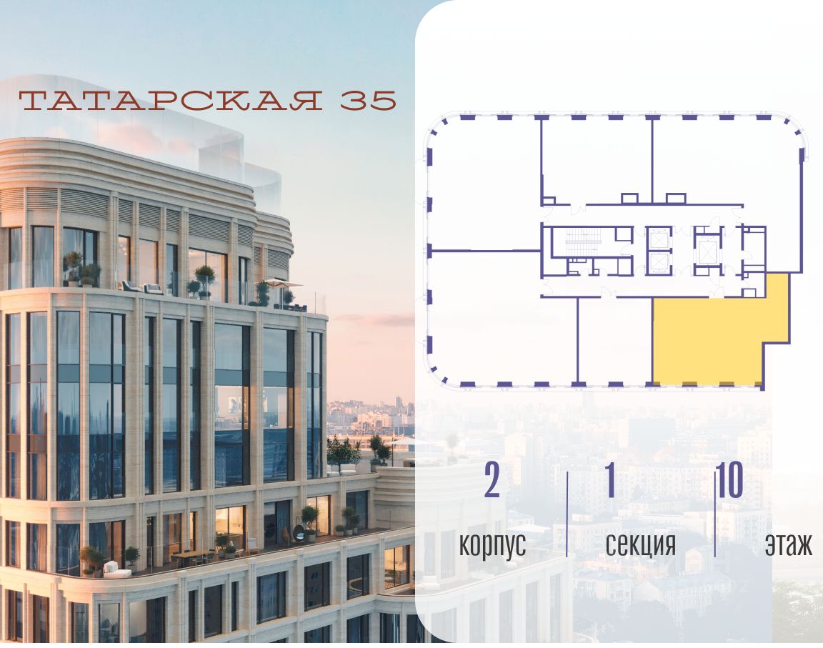 ТАТАРСКАЯ, 35 - новая архитектурная доминанта Замоскворечья, достопримечательность на фотопанорамах исторического центра Москвы. Элитный дом, созданный для тех, кто умеет смотреть далеко вперед, мыслить масштабно и воплощать собственный сценарий жизни.