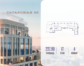 ТАТАРСКАЯ, 35 - новая архитектурная доминанта Замоскворечья, достопримечательность на фотопанорамах исторического центра Москвы. Элитный дом, созданный для тех, кто умеет смотреть далеко вперед, мыслить масштабно и воплощать собственный сценарий жизни.