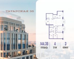 Продается просторная квартира площадью 144.30 м2 в жилом комплексе ТАТАРСКАЯ, 35. Квартира находится в 1 секции корпуса 1. Этаж 4-й из 20.
