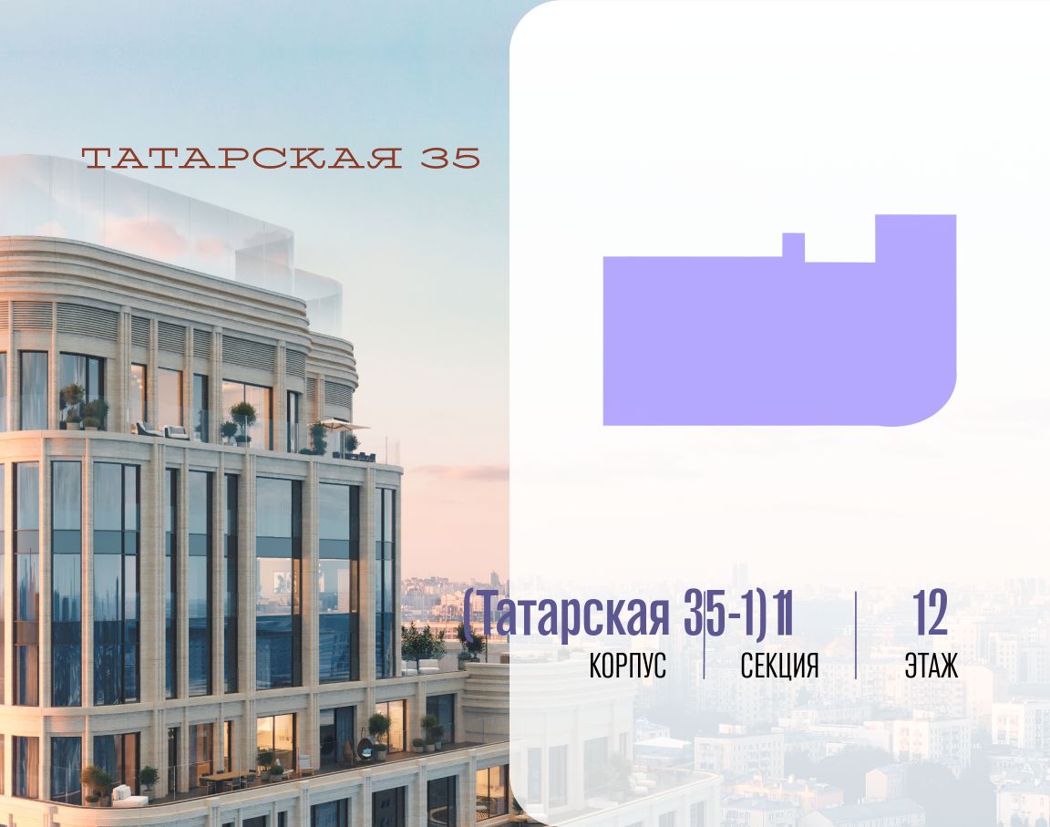 ТАТАРСКАЯ, 35 - новая архитектурная доминанта Замоскворечья, достопримечательность на фотопанорамах исторического центра Москвы. Элитный дом, созданный для тех, кто умеет смотреть далеко вперед, мыслить масштабно и воплощать собственный сценарий жизни.