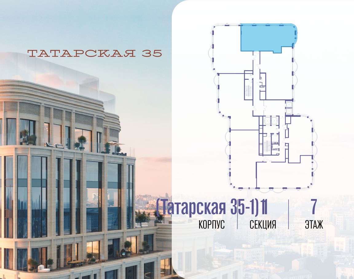 ТАТАРСКАЯ, 35 - новая архитектурная доминанта Замоскворечья, достопримечательность на фотопанорамах исторического центра Москвы. Элитный дом, созданный для тех, кто умеет смотреть далеко вперед, мыслить масштабно и воплощать собственный сценарий жизни.