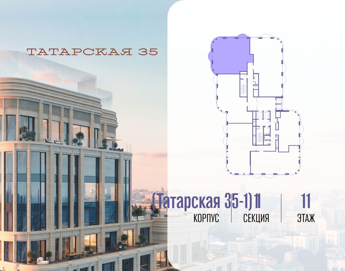 ТАТАРСКАЯ, 35 - новая архитектурная доминанта Замоскворечья, достопримечательность на фотопанорамах исторического центра Москвы. Элитный дом, созданный для тех, кто умеет смотреть далеко вперед, мыслить масштабно и воплощать собственный сценарий жизни.