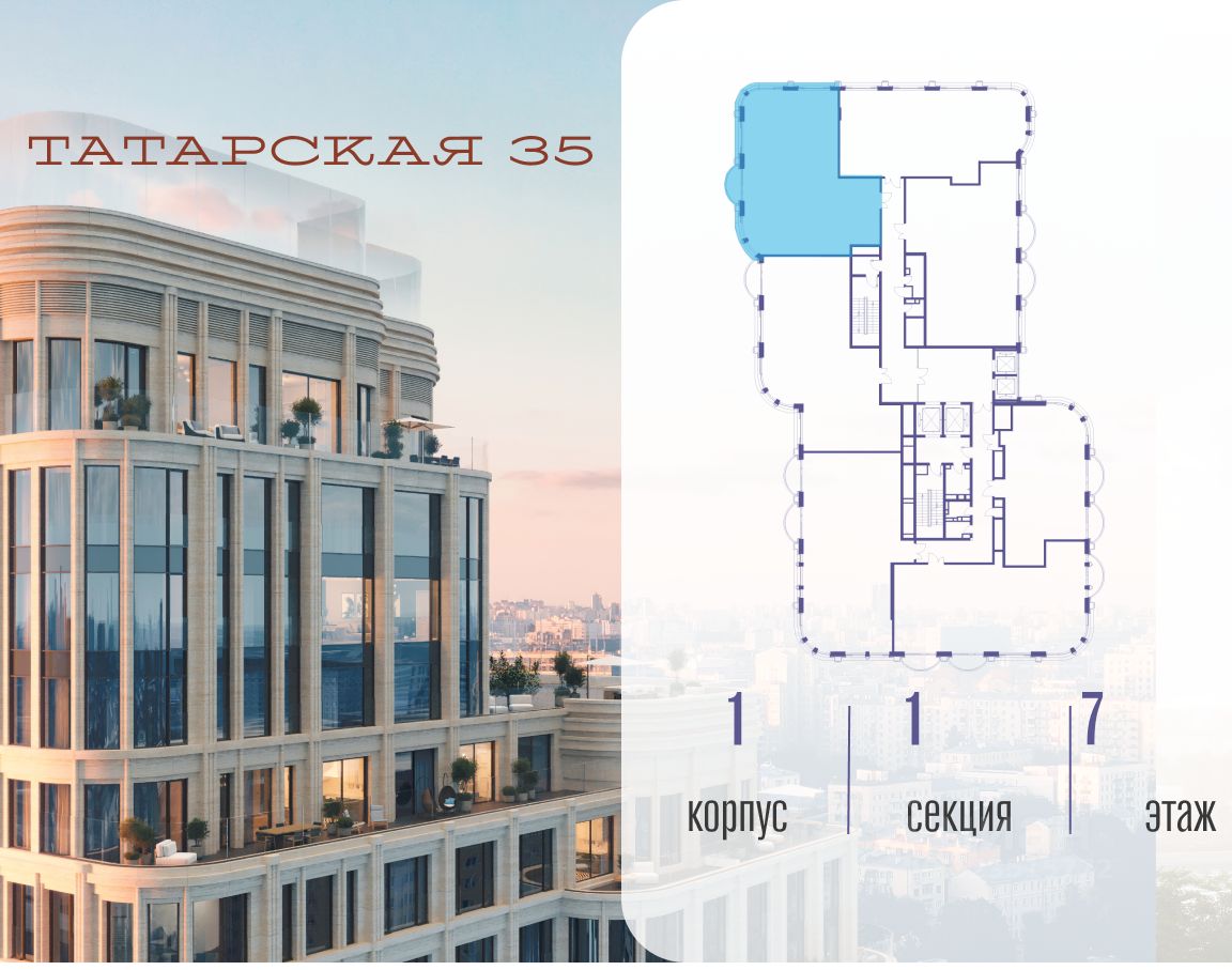 ТАТАРСКАЯ, 35 - новая архитектурная доминанта Замоскворечья, достопримечательность на фотопанорамах исторического центра Москвы. Элитный дом, созданный для тех, кто умеет смотреть далеко вперед, мыслить масштабно и воплощать собственный сценарий жизни.
