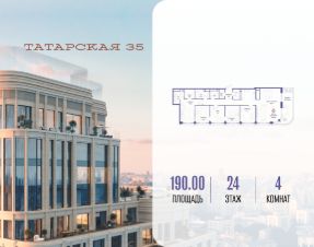 Продается просторная квартира площадью 190.00 м2 в жилом комплексе ТАТАРСКАЯ, 35. Квартира находится в 1 секции корпуса 3. Этаж 24-й из 24.