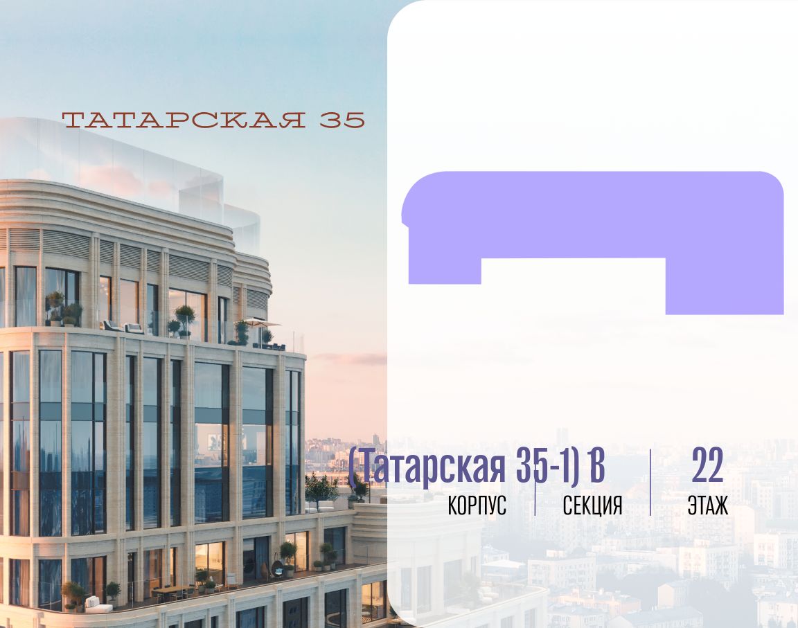 ТАТАРСКАЯ, 35 - новая архитектурная доминанта Замоскворечья, достопримечательность на фотопанорамах исторического центра Москвы. Элитный дом, созданный для тех, кто умеет смотреть далеко вперед, мыслить масштабно и воплощать собственный сценарий жизни.