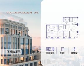 ТАТАРСКАЯ, 35 - новая архитектурная доминанта Замоскворечья, достопримечательность на фотопанорамах исторического центра Москвы. Элитный дом, созданный для тех, кто умеет смотреть далеко вперед, мыслить масштабно и воплощать собственный сценарий жизни.