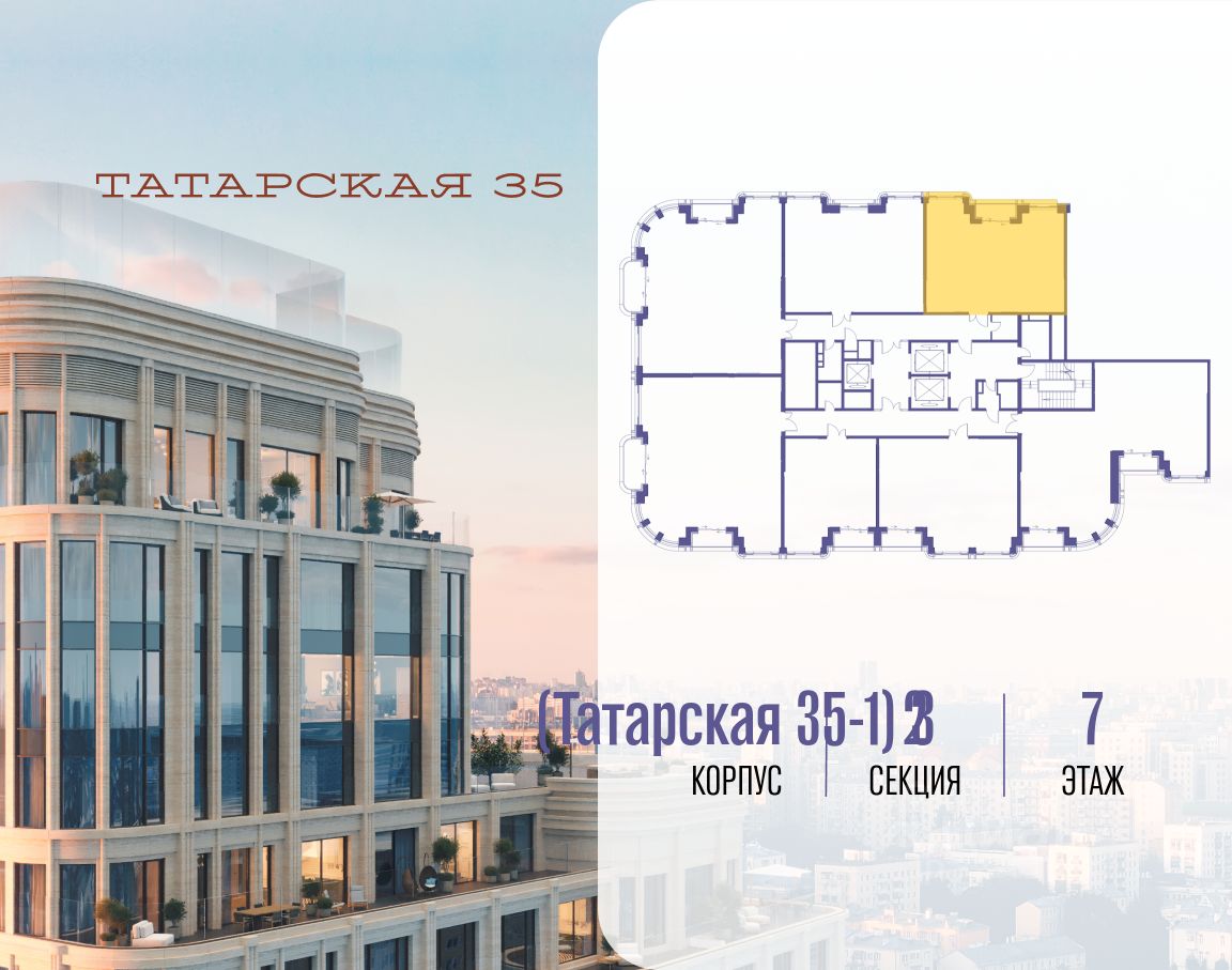 ТАТАРСКАЯ, 35 - новая архитектурная доминанта Замоскворечья, достопримечательность на фотопанорамах исторического центра Москвы. Элитный дом, созданный для тех, кто умеет смотреть далеко вперед, мыслить масштабно и воплощать собственный сценарий жизни.